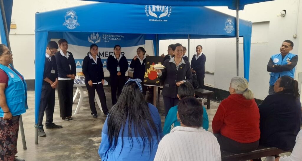 La Sociedad de Beneficencia del Callao (SBC) destacó la reciente visita de la Universidad Nacional del Callao (UNAC), a través de la Facultad de Ciencias de la Salud y la Escuela Profesional de Enfermería, cuyos estudiantes y docentes realizaron una valiosa sesión educativa dirigida a los beneficiarios de los comedores. La jornada incluyó orientación sobre la prevención de la anemia, control de presión arterial y entrevistas personalizadas para evaluar el estado de salud de los participantes.