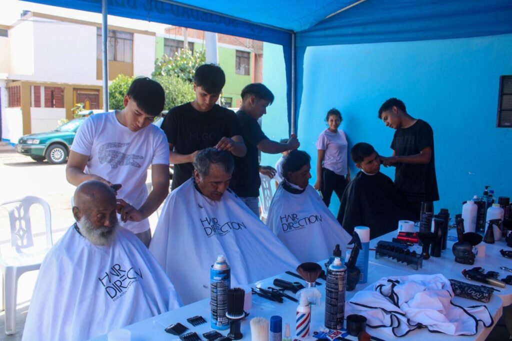 Además, durante la jornada se desarrolló una campaña de corte de cabello totalmente gratuito, gracias al apoyo solidario de la academia Hair Direction Educación de Barbería, cuyos estudiantes y profesionales brindaron atención con dedicación y calidad, contribuyendo a mejorar la autoestima y bienestar de los beneficiarios.