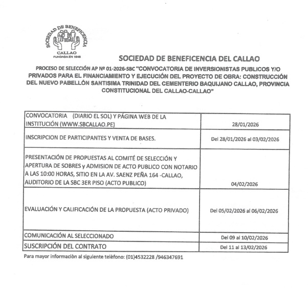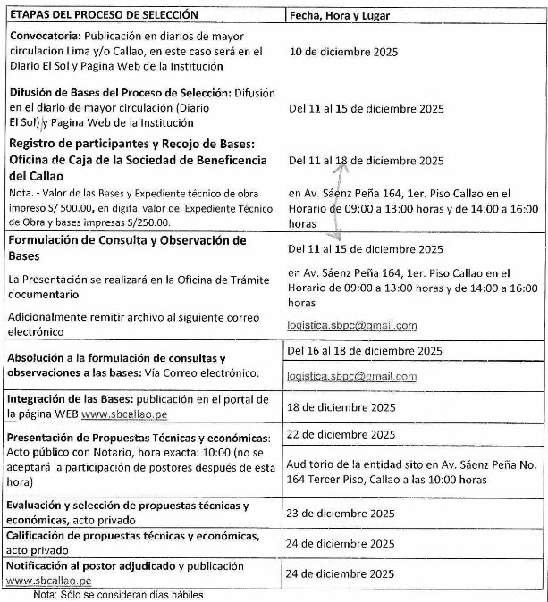 Convocatoria Contratación de Suministro de Bienes Adquisición de Alimentos Secos y Alimentos Perecederos para los seis Comedores de la Sociedad de Beneficencia del Callao.